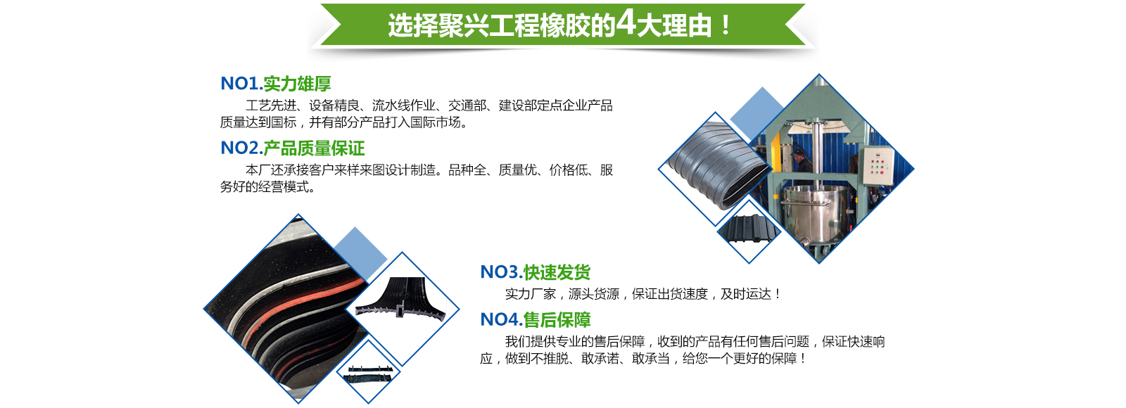 衡水聚興工程橡膠有限公司,位于河北省衡水市榕花街,石德高速,石德鐵路,京九鐵路在此交匯,106國(guó)道,石黃高速由境內(nèi)穿過。得天獨(dú)厚的地理位置為公司的發(fā)展創(chuàng)造了良好的交通條件。本廠工藝先進(jìn)、設(shè)備精良、流水線作業(yè)、交通部、建設(shè)部定點(diǎn)企業(yè)產(chǎn)品質(zhì)量達(dá)到國(guó)標(biāo),并有部分產(chǎn)品打入國(guó)際市場(chǎng)、我廠主要生產(chǎn)止水帶、橋梁支座、輸送帶、伸縮縫、托滾高壓膠管,并按圖加工各種橡膠制品。同時(shí)本廠還承接客戶 ...